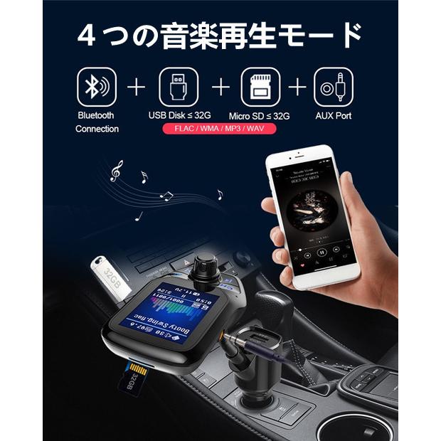 Amazon Co Jp Fmトランスミッター ブルートゥース 車載用 Bluetoothレシーバー 音楽 高音質 ハンズフリー通話 無線 Usb充電ポート Iphone適用 Android適用 Aux Tfカード Uディスク音楽再生 車 バイク