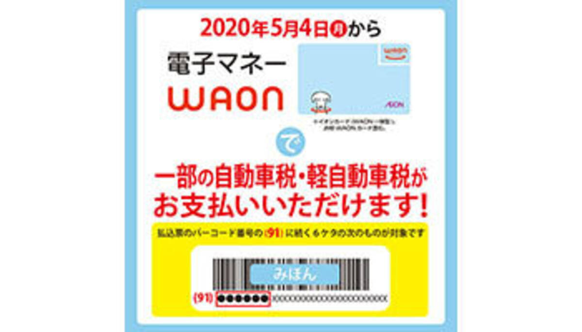 ミニストップ 電子マネーwaonで一部の自動車税 軽自動車税の支払いに対応 年5月13日 エキサイトニュース